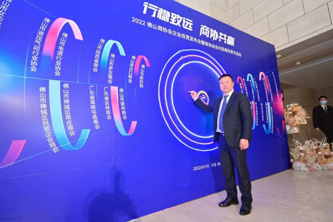 1月15日下午,2022佛山商协会企业投资发布会暨商协会会长招商投资交流会在佛山市顺德区罗浮宫索菲特酒店顺利召开。佛山市液压气动行业协会会长张卫、执行会长叶永彬、秘书长卢平、监事长周太鹏应邀出席此次会议。